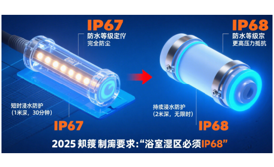 2025中國(guó)十大LED燈帶品牌新規(guī)下:浴室防水等級(jí)精準(zhǔn)選擇,揭秘IP67與IP68差異