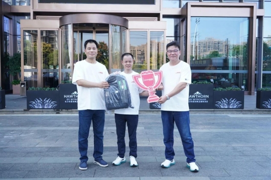 共同為“愛格跑·萬(wàn)象行”第一名頒發(fā)紀(jì)念獎(jiǎng)品