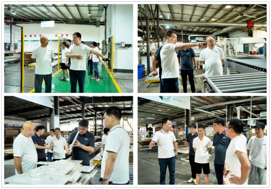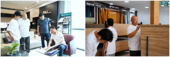 隨后,一行人前往旺德府工業(yè)園,參觀品牌自有工廠。在生產(chǎn)車間,大家通過觀木紋辨真?zhèn)巍⒂|板材測(cè)質(zhì)感、聞膠體驗(yàn)環(huán)保的沉浸式交互,深度觸摸品質(zhì)內(nèi)核。