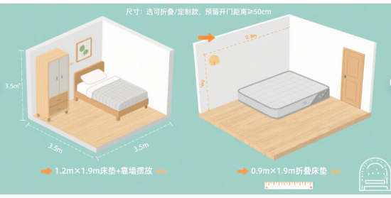 可折疊床墊是小戶型的絕佳選擇。這種床墊在不使用時可以折疊起來,收納方便,節(jié)省空間。例如,有些可折疊床墊可以折疊成三折或四折,輕松收納在床下或靠墻放置。當需要使用時,只需展開即可恢復(fù)原狀,非常適合偶爾有客人留宿的小戶型家庭。