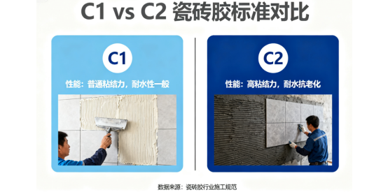 在現(xiàn)代建筑裝修中,瓷磚膠作為粘貼瓷磚的重要材料,其性能直接影響到裝修質(zhì)量和使用壽命。目前市場上常見的瓷磚膠按照EN12004標準可分為多個等級,其中C1和C2是應(yīng)用較為廣泛的兩個基礎(chǔ)等級。本文將從材料特性、性能參數(shù)、適用場景等方面深入解析C1與C2瓷磚膠的核心差異,為裝修從業(yè)者和業(yè)主提供專業(yè)的選材參考。