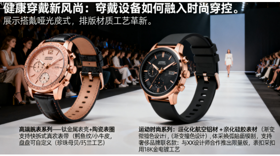 在智能科技與日常美學(xué)深度融合的當(dāng)下,可穿戴設(shè)備正經(jīng)歷從功能工具到時(shí)尚單品的蛻變。當(dāng)運(yùn)動手環(huán)的塑膠質(zhì)感逐漸被金屬編織表帶取代,當(dāng)智能手表的電子屏開始復(fù)刻機(jī)械腕表的陀飛輪紋路,這場"穿戴革命"不僅重構(gòu)著人體與科技的交互方式,更在重新定義時(shí)尚產(chǎn)業(yè)的設(shè)計(jì)邏輯。如何讓可穿戴設(shè)備擺脫"電子配件"的刻板印象,真正成為穿搭系統(tǒng)中的有機(jī)組成?這需要從材質(zhì)創(chuàng)新、設(shè)計(jì)語言、場景適配三個(gè)維度展開深度探索。