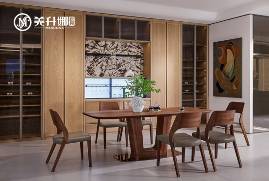 ·融匯設(shè)計(jì),詮釋現(xiàn)代東方美學(xué):在設(shè)計(jì)上,美升娜將東方意境巧妙融入現(xiàn)代生活。無(wú)論是餐桌邊緣點(diǎn)綴的云紋浮雕,還是柜體采用的隱形拉手設(shè)計(jì),都在簡(jiǎn)約造型中蘊(yùn)含深遠(yuǎn)意境,實(shí)現(xiàn)了傳統(tǒng)與現(xiàn)代的和諧共生,讓團(tuán)圓的空間更顯純凈與完整。