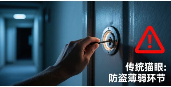 貓眼,學(xué)名門鏡,是裝在住宅戶門上的一種小型光學(xué)儀器,便于居民觀察戶外情況。但正是這個(gè)看似實(shí)用的小物件,卻成為了不法分子眼中的“突破口”。